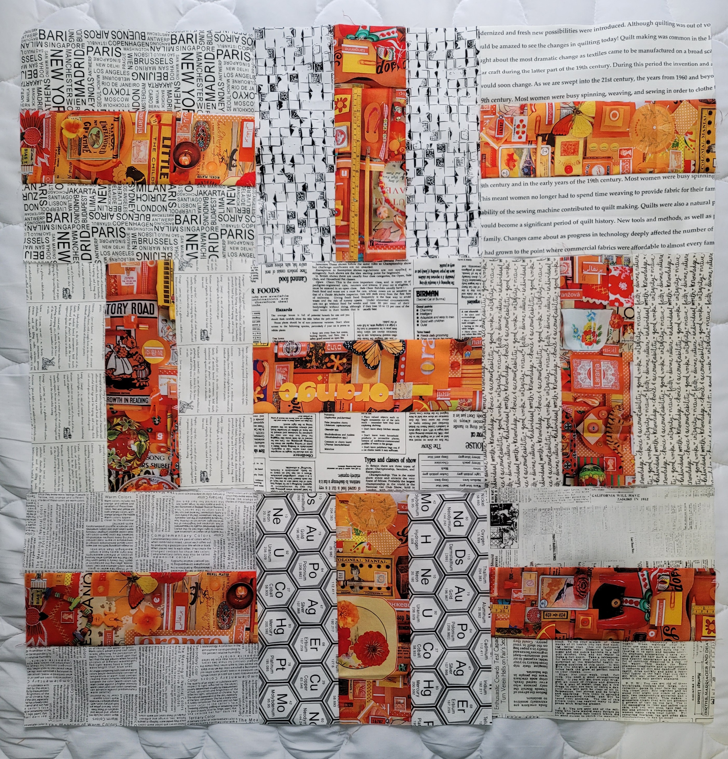 My friend Doreen quilted it in orange thread because I wanted to see the quilting on the back.